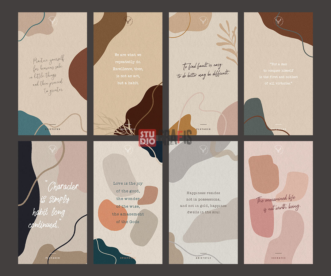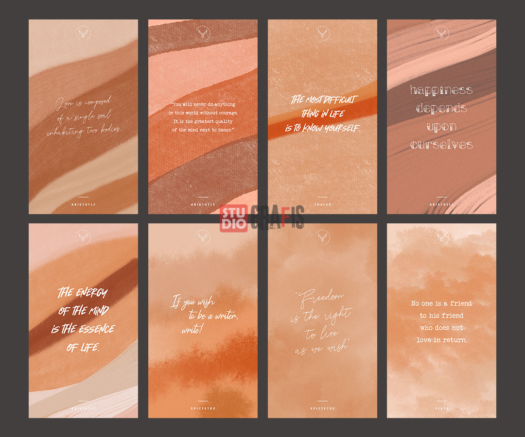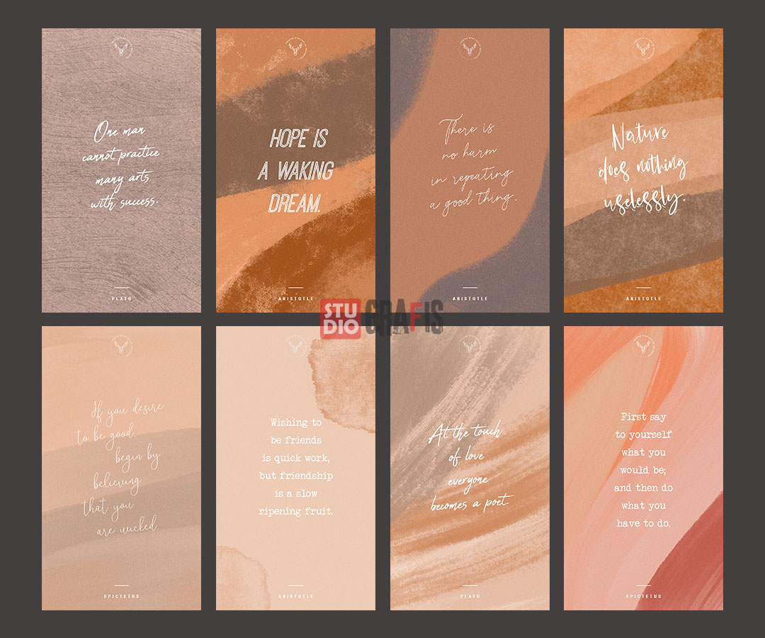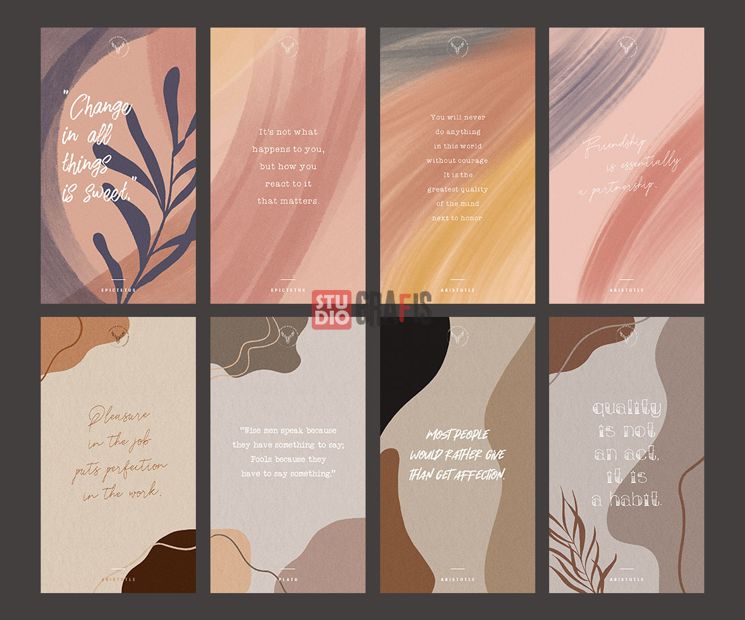 40 desain berisi quotes terkenal untuk Instagram Story. File terdiri dari 40 JPG siap posting. Kamu juga akan mendapat 40 file desain versi PSD, sehingga kamu bisa dengan mudah untuk mengedit desain-desain tersebut.