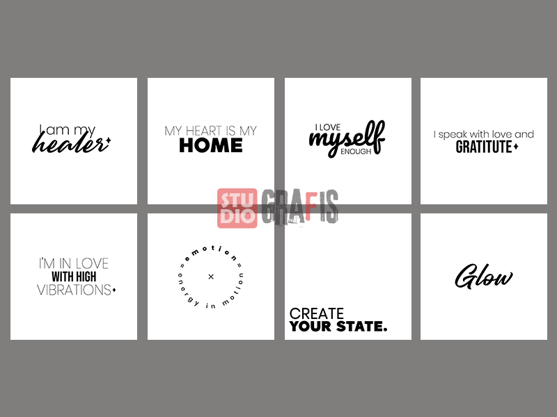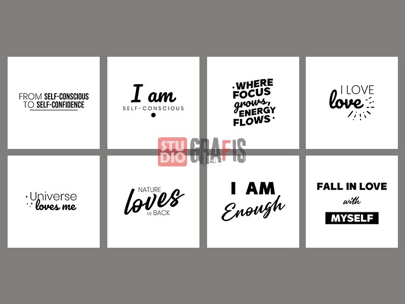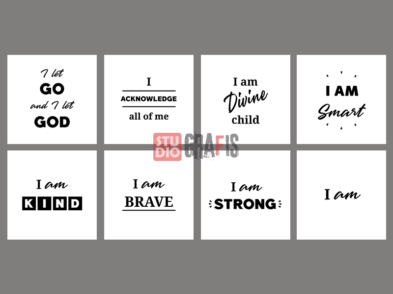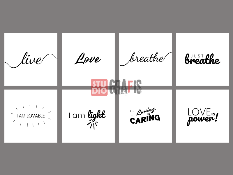 48 desain unik & keren bertema kata-kata motivasi, cocok untuk printing kaos/tshirt, status WA, social media posts seperti FB & IG, hiasan dinding, foto frame, tote bag, kantung belanja, kartu ucapan, cetak mug dan digital printing lainnya.